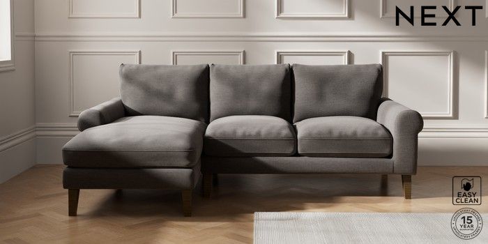 7.0.3 Buy Palermo Relaxed Sit Medium Sofa Chaise - Left Hand Fine Chenille Easy Clean Dark Smoke Grey Tapered - Mid from the Next UK online shop Click here to use our accessible website