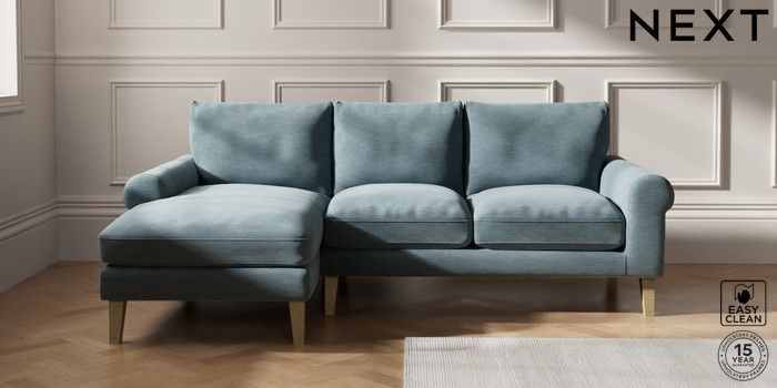 7.0.3 Buy Palermo Relaxed Sit Medium Sofa Chaise - Left Hand Fine Chenille Easy Clean Mid Blue Tapered - Light from the Next UK online shop Click here to use our accessible website