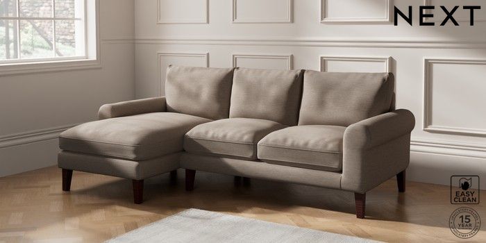 6.12.1 Buy Palermo Relaxed Sit Medium Sofa Chaise - Left Hand Fine Chenille Easy Clean Mid Taupe Brown Tapered - Dark Brown from the Next UK online shop Click here to use our accessible website