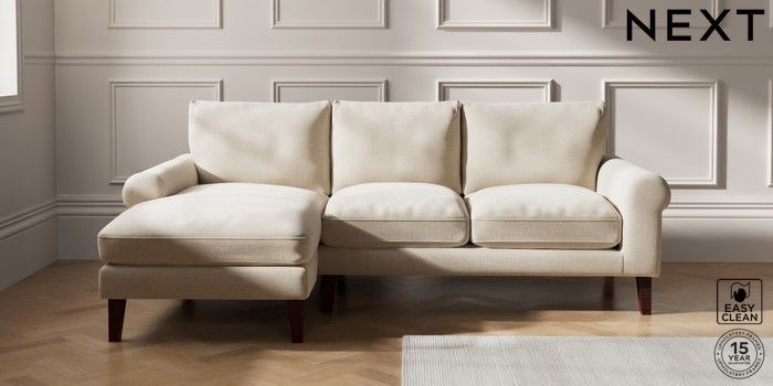 7.0.3 Buy Palermo Relaxed Sit Medium Sofa Chaise - Left Hand Fine Chenille Easy Clean Oyster Tapered - Dark Brown from the Next UK online shop Click here to use our accessible website
