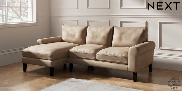 6.12.1 Buy Palermo Relaxed Sit Medium Sofa Chaise - Left Hand Luxe Chenille Mid Camel Beige Tapered - Dark from the Next UK online shop Click here to use our accessible website