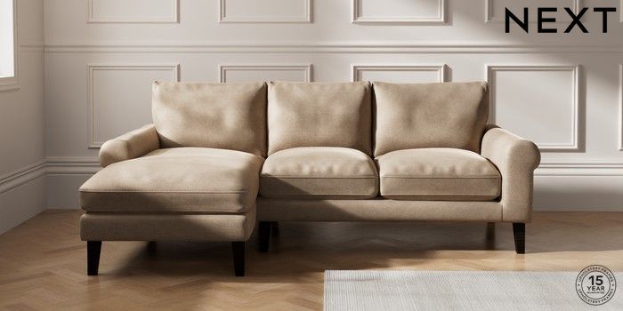 7.0.3 Buy Palermo Relaxed Sit Medium Sofa Chaise - Left Hand Luxe Chenille Mid Camel Beige Tapered - Dark from the Next UK online shop Click here to use our accessible website