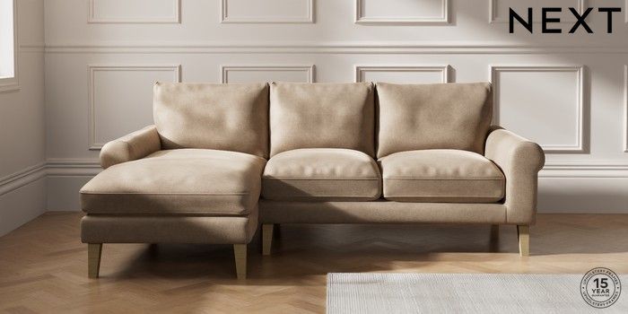 7.0.3 Buy Palermo Relaxed Sit Medium Sofa Chaise - Left Hand Luxe Chenille Mid Camel Beige Tapered - Light from the Next UK online shop Click here to use our accessible website