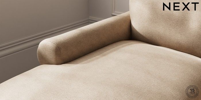 7.0.3 Buy Palermo Relaxed Sit Medium Sofa Chaise - Left Hand Luxe Chenille Mid Camel Beige Tapered - Mid from the Next UK online shop Click here to use our accessible website