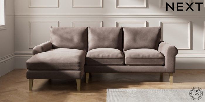 7.0.3 Buy Palermo Relaxed Sit Medium Sofa Chaise - Left Hand Luxe Chenille Mink Brown Tapered - Light from the Next UK online shop Click here to use our accessible website