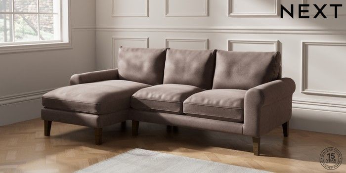6.12.1 Buy Palermo Relaxed Sit Medium Sofa Chaise - Left Hand Luxe Chenille Mink Brown Tapered - Mid from the Next UK online shop Click here to use our accessible website