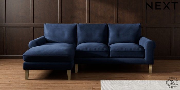 7.0.3 Buy Palermo Relaxed Sit Medium Sofa Chaise - Left Hand Luxe Chenille Navy Blue Tapered - Light from the Next UK online shop Click here to use our accessible website