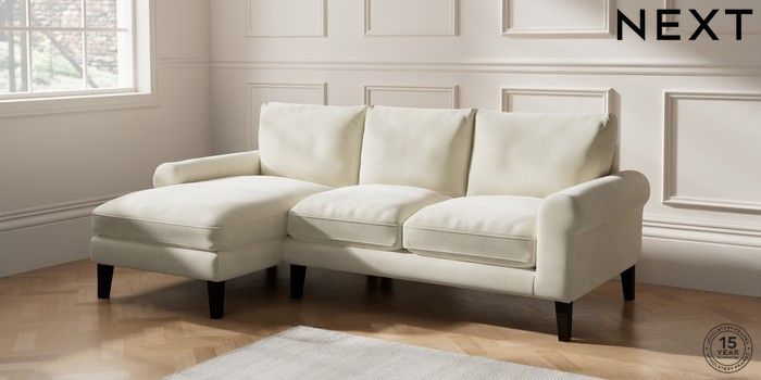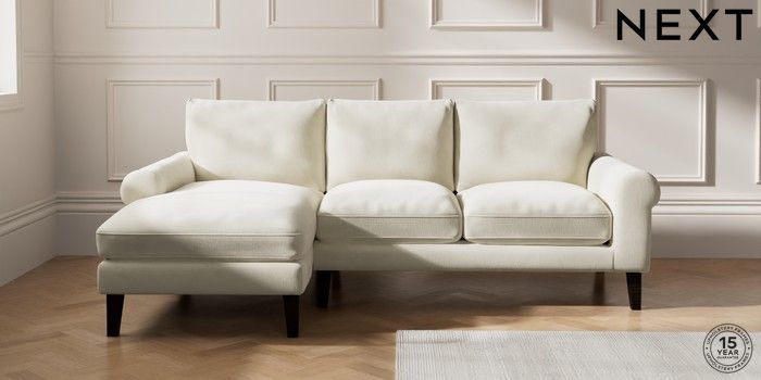 7.0.3 Buy Palermo Relaxed Sit Medium Sofa Chaise - Left Hand Luxe Chenille Oyster Tapered - Dark from the Next UK online shop Click here to use our accessible website