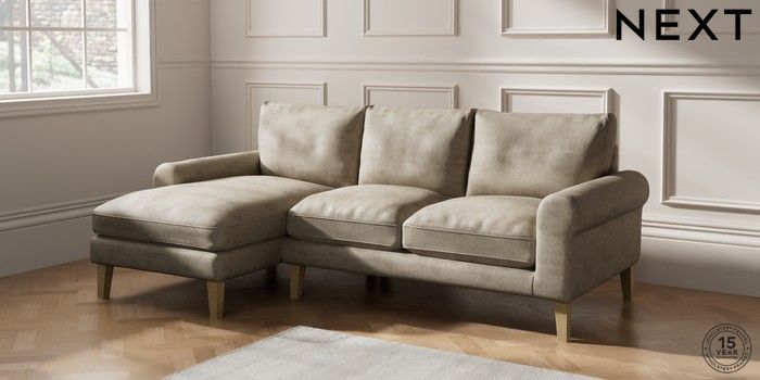 6.12.1 Buy Palermo Relaxed Sit Medium Sofa Chaise - Left Hand Monza Faux Leather Easy Clean Mink Brown Tapered - Light from the Next UK online shop Click here to use our accessible website