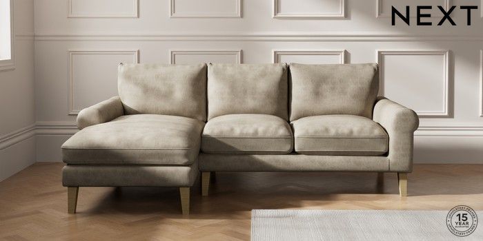 7.0.3 Buy Palermo Relaxed Sit Medium Sofa Chaise - Left Hand Monza Faux Leather Easy Clean Mink Brown Tapered - Light from the Next UK online shop Click here to use our accessible website