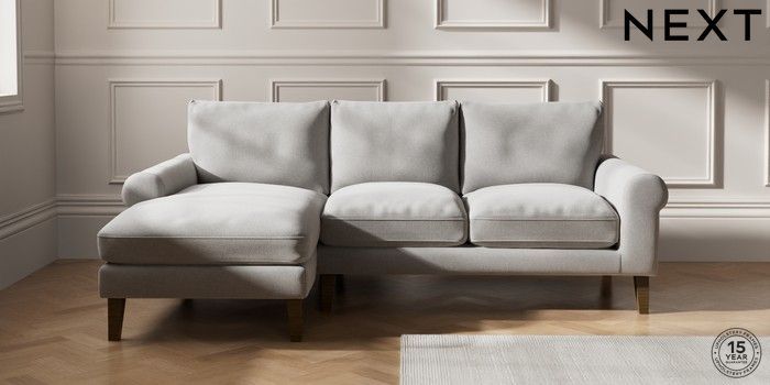 7.0.3 Buy Palermo Relaxed Sit Medium Sofa Chaise - Left Hand Natural Mix Light Grey Tapered - Mid from the Next UK online shop Click here to use our accessible website