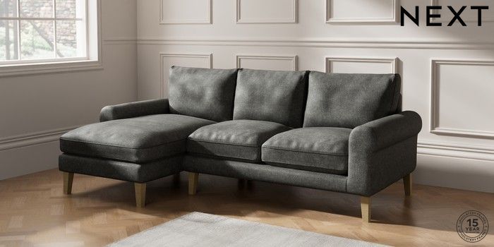 6.12.1 Buy Palermo Relaxed Sit Medium Sofa Chaise - Left Hand Plush Chenille Dark Grey Tapered - Light from the Next UK online shop Click here to use our accessible website
