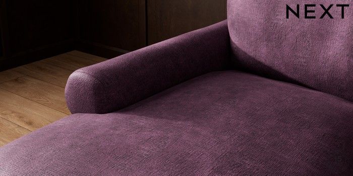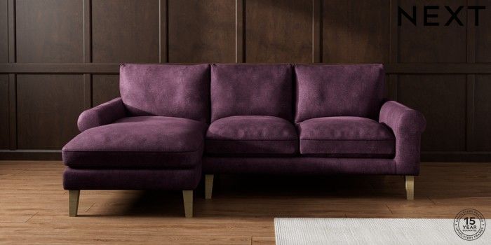 7.0.3 Buy Palermo Relaxed Sit Medium Sofa Chaise - Left Hand Plush Chenille Dark Plum Purple Tapered - Light from the Next UK online shop Click here to use our accessible website