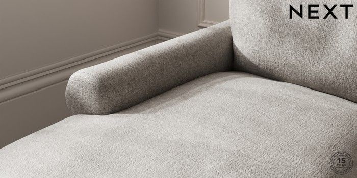 7.0.3 Buy Palermo Relaxed Sit Medium Sofa Chaise - Left Hand Plush Chenille Light Grey Tapered - Dark Brown from the Next UK online shop Click here to use our accessible website