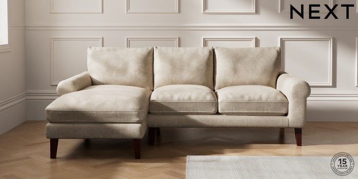 7.0.3 Buy Palermo Relaxed Sit Medium Sofa Chaise - Left Hand Plush Chenille Light Natural Tapered - Dark Brown from the Next UK online shop Click here to use our accessible website