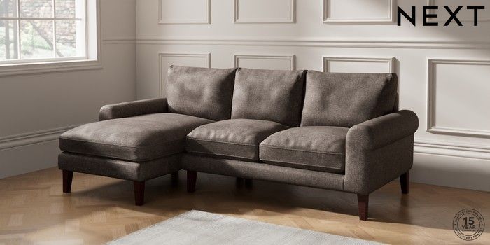 6.12.1 Buy Palermo Relaxed Sit Medium Sofa Chaise - Left Hand Plush Chenille Mink Brown Tapered - Dark Brown from the Next UK online shop Click here to use our accessible website