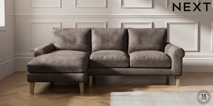 7.0.3 Buy Palermo Relaxed Sit Medium Sofa Chaise - Left Hand Plush Chenille Mink Brown Tapered - Light from the Next UK online shop Click here to use our accessible website