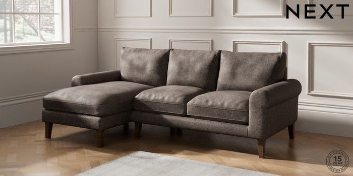 6.12.1 Buy Palermo Relaxed Sit Medium Sofa Chaise - Left Hand Plush Chenille Mink Brown Tapered - Mid from the Next UK online shop Click here to use our accessible website