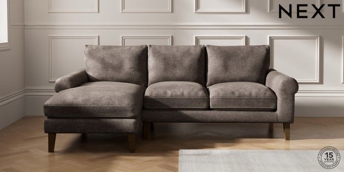 7.0.3 Buy Palermo Relaxed Sit Medium Sofa Chaise - Left Hand Plush Chenille Mink Brown Tapered - Mid from the Next UK online shop Click here to use our accessible website
