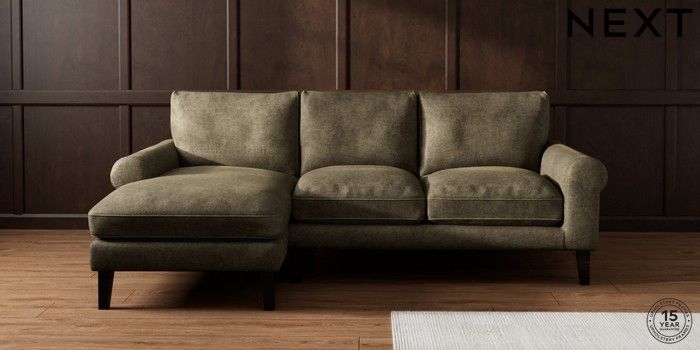 7.0.3 Buy Palermo Relaxed Sit Medium Sofa Chaise - Left Hand Plush Chenille Moss Green Tapered - Dark from the Next UK online shop Click here to use our accessible website