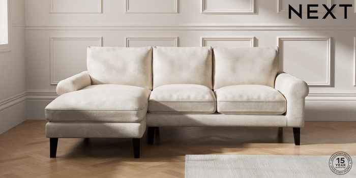 7.0.3 Buy Palermo Relaxed Sit Medium Sofa Chaise - Left Hand Plush Chenille Oyster Tapered - Dark from the Next UK online shop Click here to use our accessible website