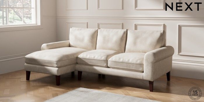 6.12.1 Buy Palermo Relaxed Sit Medium Sofa Chaise - Left Hand Plush Chenille Oyster Tapered - Dark Brown from the Next UK online shop Click here to use our accessible website