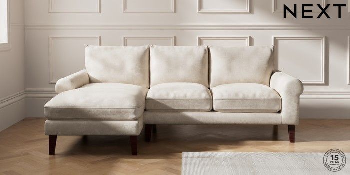 7.0.3 Buy Palermo Relaxed Sit Medium Sofa Chaise - Left Hand Plush Chenille Oyster Tapered - Dark Brown from the Next UK online shop Click here to use our accessible website