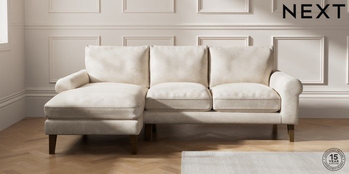 7.0.3 Buy Palermo Relaxed Sit Medium Sofa Chaise - Left Hand Plush Chenille Oyster Tapered - Mid from the Next UK online shop Click here to use our accessible website