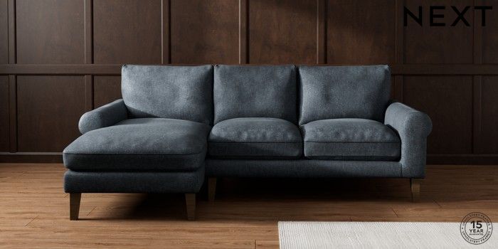 7.0.3 Buy Palermo Relaxed Sit Medium Sofa Chaise - Left Hand Plush Chenille Slate Blue Tapered - Mid from the Next UK online shop Click here to use our accessible website
