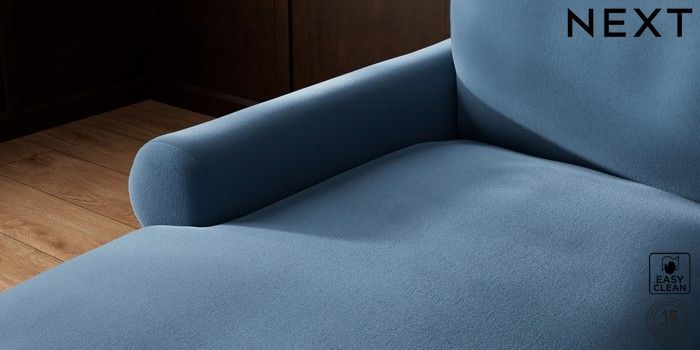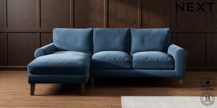 7.0.3 Buy Palermo Relaxed Sit Medium Sofa Chaise - Left Hand Plush Velvet Easy Clean Airforce Blue Tapered - Mid from the Next UK online shop Click here to use our accessible website