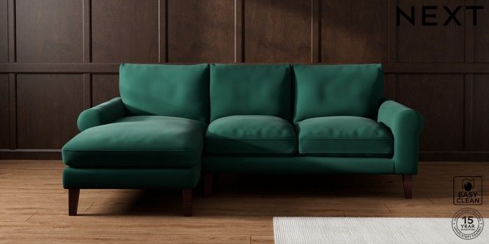 7.0.3 Buy Palermo Relaxed Sit Medium Sofa Chaise - Left Hand Plush Velvet Easy Clean Bottle Green Tapered - Dark Brown from the Next UK online shop Click here to use our accessible website