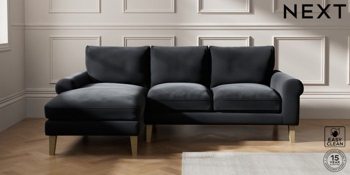 7.0.3 Buy Palermo Relaxed Sit Medium Sofa Chaise - Left Hand Plush Velvet Easy Clean Charcoal Grey Tapered - Light from the Next UK online shop Click here to use our accessible website