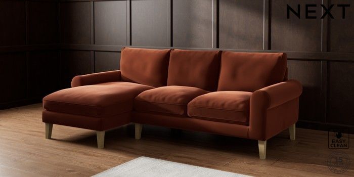 6.12.1 Buy Palermo Relaxed Sit Medium Sofa Chaise - Left Hand Plush Velvet Easy Clean Ginger Orange Tapered - Light from the Next UK online shop Click here to use our accessible website