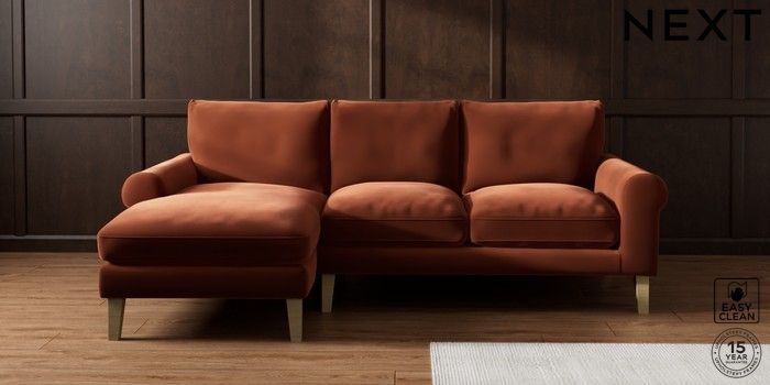 7.0.3 Buy Palermo Relaxed Sit Medium Sofa Chaise - Left Hand Plush Velvet Easy Clean Ginger Orange Tapered - Light from the Next UK online shop Click here to use our accessible website