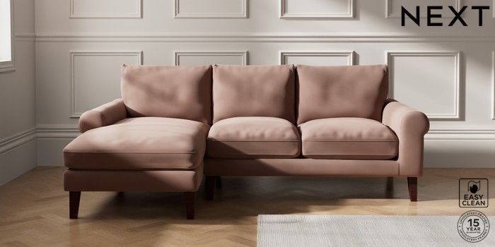7.0.3 Buy Palermo Relaxed Sit Medium Sofa Chaise - Left Hand Plush Velvet Easy Clean Mid Natural Tapered - Dark Brown from the Next UK online shop Click here to use our accessible website
