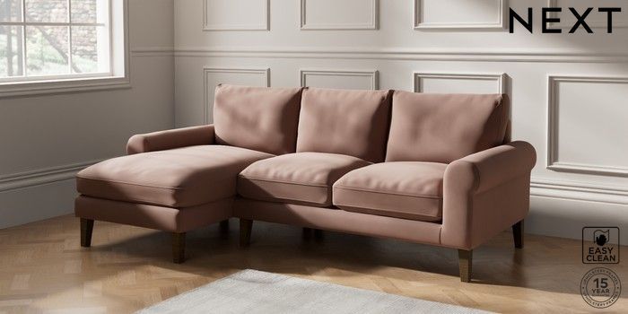 6.12.1 Buy Palermo Relaxed Sit Medium Sofa Chaise - Left Hand Plush Velvet Easy Clean Mid Natural Tapered - Mid from the Next UK online shop Click here to use our accessible website