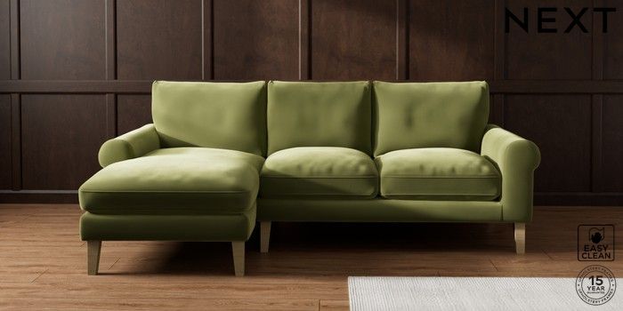 7.0.3 Buy Palermo Relaxed Sit Medium Sofa Chaise - Left Hand Plush Velvet Easy Clean Mid Olive Green Tapered - Light from the Next UK online shop Click here to use our accessible website