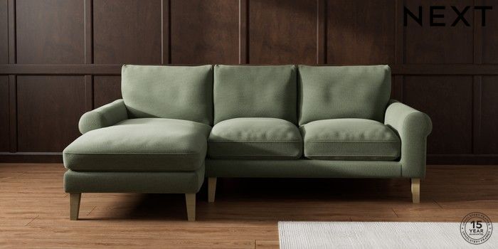 7.0.3 Buy Palermo Relaxed Sit Medium Sofa Chaise - Left Hand Relaxed Linen Look Dark Green Tapered - Light from the Next UK online shop Click here to use our accessible website