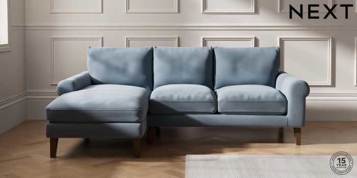 7.0.3 Buy Palermo Relaxed Sit Medium Sofa Chaise - Left Hand Relaxed Linen Look Mid Blue Tapered - Mid from the Next UK online shop Click here to use our accessible website