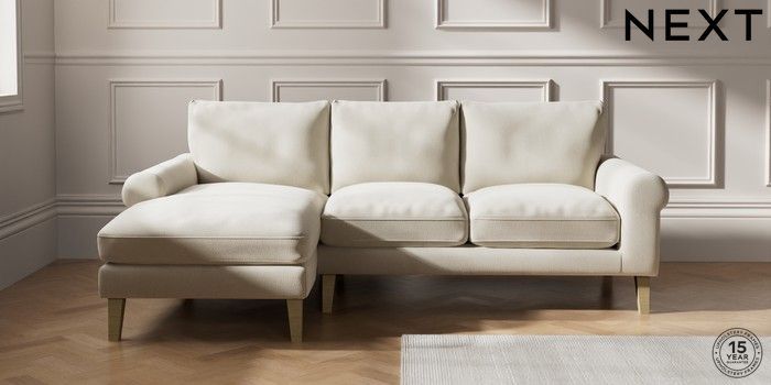 7.0.3 Buy Palermo Relaxed Sit Medium Sofa Chaise - Left Hand Relaxed Linen Look Oyster Tapered - Light from the Next UK online shop Click here to use our accessible website