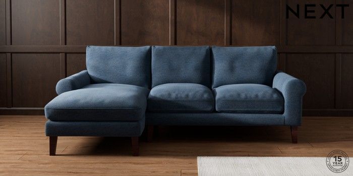 7.0.3 Buy Palermo Relaxed Sit Medium Sofa Chaise - Left Hand Ripple Chenille Dark Blue Tapered - Dark Brown from the Next UK online shop Click here to use our accessible website
