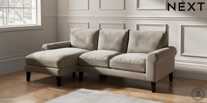 6.12.1 Buy Palermo Relaxed Sit Medium Sofa Chaise - Left Hand Ripple Chenille Light Natural Tapered - Dark from the Next UK online shop Click here to use our accessible website