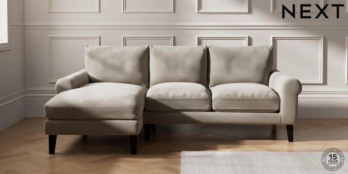 7.0.3 Buy Palermo Relaxed Sit Medium Sofa Chaise - Left Hand Ripple Chenille Light Natural Tapered - Dark from the Next UK online shop Click here to use our accessible website