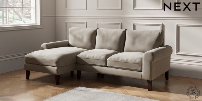 6.12.1 Buy Palermo Relaxed Sit Medium Sofa Chaise - Left Hand Ripple Chenille Light Natural Tapered - Dark Brown from the Next UK online shop Click here to use our accessible website