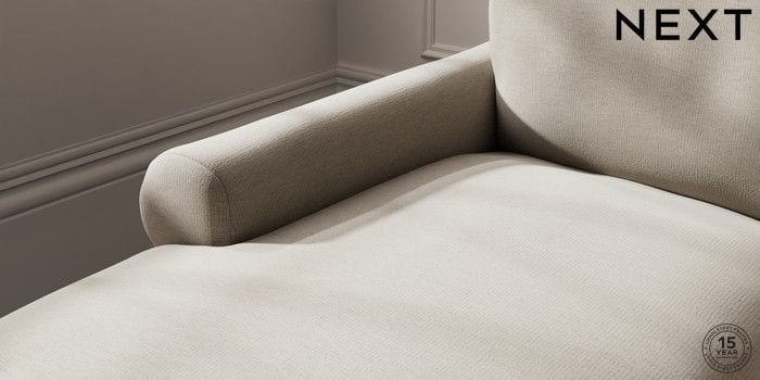 7.0.3 Buy Palermo Relaxed Sit Medium Sofa Chaise - Left Hand Ripple Chenille Light Natural Tapered - Dark Brown from the Next UK online shop Click here to use our accessible website