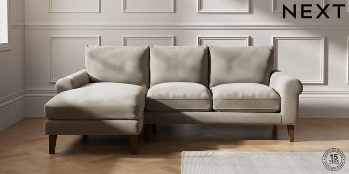 7.0.3 Buy Palermo Relaxed Sit Medium Sofa Chaise - Left Hand Ripple Chenille Light Natural Tapered - Mid from the Next UK online shop Click here to use our accessible website