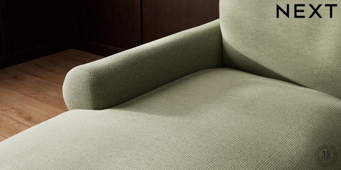 7.0.3 Buy Palermo Relaxed Sit Medium Sofa Chaise - Left Hand Ripple Chenille Mid Moss Green Tapered - Dark Brown from the Next UK online shop Click here to use our accessible website
