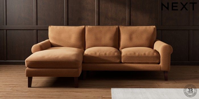 7.0.3 Buy Palermo Relaxed Sit Medium Sofa Chaise - Left Hand Ripple Chenille Mid Rust Brown Tapered - Dark Brown from the Next UK online shop Click here to use our accessible website