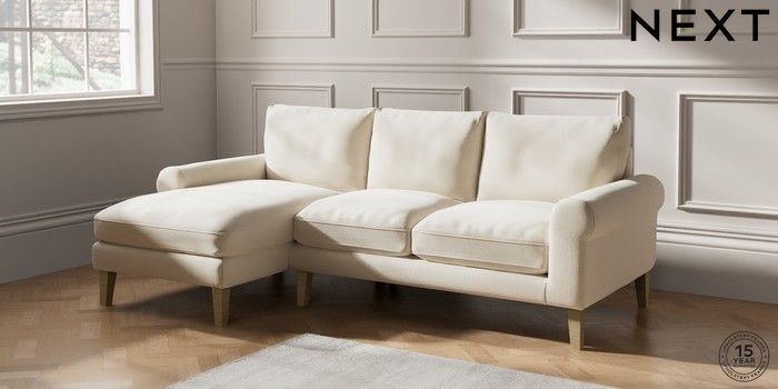 6.12.1 Buy Palermo Relaxed Sit Medium Sofa Chaise - Left Hand Ripple Chenille Oyster Tapered - Light from the Next UK online shop Click here to use our accessible website