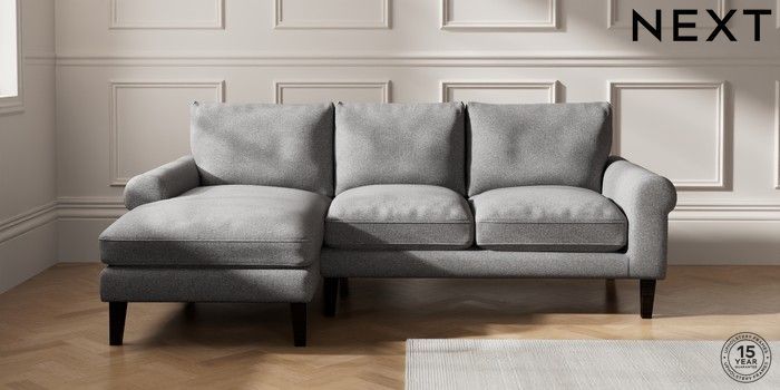 7.0.3 Buy Palermo Relaxed Sit Medium Sofa Chaise - Left Hand Studio Chenille Mid Grey Tapered - Dark from the Next UK online shop Click here to use our accessible website